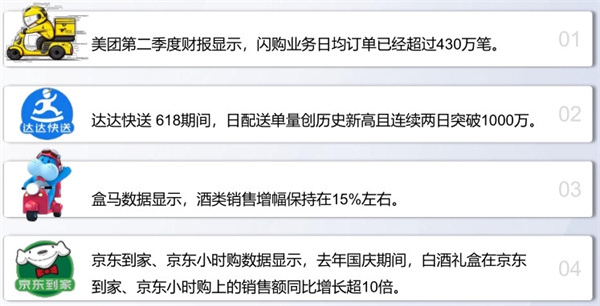 线上消费订单的配送效率变得越来越高,生活节奏的加快也让人们对消费的即时性越来越重视,即时需求正在全面爆发。