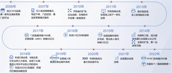 2006年创立1919酒类连锁品牌(后改名为1919酒类连锁),开办第一家酒类直供门店;