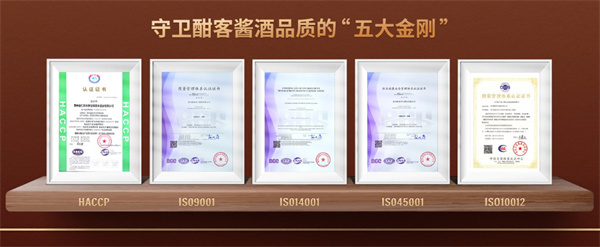 酣客君丰主动接轨世界级的品质标准认定,坚守执行全人类最严苛的审核标准,成功斩获守卫酣客酱酒品质的“五大金刚”,保证每一滴酒都是世界级最高品质标准。