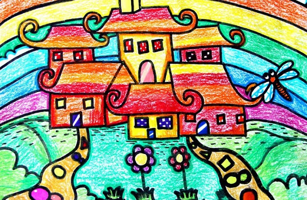6、7岁儿童处于幼儿期向儿童期转变的阶段,大脑的发育已达成年人的90%,但在心理方面却仍保留着幼儿期的状态,想象力十分发达。他们把画画看成是一种游戏常把有生命的和无生命的东西混淆在一起。一过7岁,幼儿的这种特征就逐渐减少或削弱,渐渐能客观地、实事求是地认识客观世界,在想象的同时,能按照自己所熟悉的那样去画。随着他们参加社会活动增多和知识面的不断扩大,绘画创作达到高潮,进入儿童绘画创作的黄金时代。他们依靠直觉,加上自己对事物的认识和想象,根据头脑中对物象特征形成的概念,凭自己的记忆表达心绪和意象,造型的模式是这一阶段儿童画的一般特征,故称之为图式期。这个时期,特别要求教师和家长千万不能以成人的眼光来评价儿童画作品,也不能让儿童一味地去模仿成人的作品或技法,要顺其自然充分给孩子自由,让儿童用自己喜欢的表现方式画自己喜欢画的内容,这样才不会把儿童喜欢画画的天性给扼杀了。