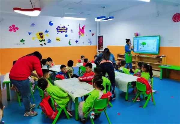 公司会根据儿童绘画班的品牌形象,派专业的设计团队设计出平面图以及效果图,加盟商参考设计图进行装修。