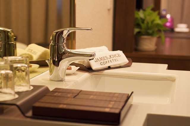 推开深棕色的大门,进入James Joyce Coffetel,散发着一股馥郁的"咖啡"香薰,弥漫着CD的低吟浅唱,油灯般柔和的灯光。整个空间以优雅、复古、温馨的色系,作为其装潢特色,每个细节通过混搭的软装衬托喆啡酒店的独特,24小时的咖啡厅、咖啡式check in,开放式书吧、上网区、LED媒体墙、欧式火炉、不同的艺术摆件等。让倾心安静或喜爱阅读,或商务会谈的您身处不同的角落都能尽享复古暖溢的风情。