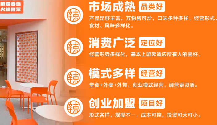 胡辣辣麻辣烫香锅连锁加盟好不好?胡辣辣麻辣烫香锅拥有成熟的管理和完善的服务,一旦顺利加盟,总部将提供一站式帮扶指导,集项目开发、品牌包装、营销策划、物流配送、免费培训、新品更新、招商加盟、运营指导等一体,智慧之选者即使毫无经验,也可轻松创业、不操心。