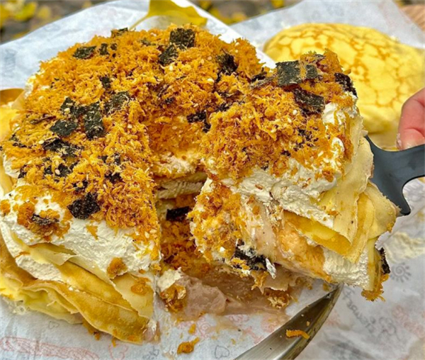 2. 芒果千层蛋糕:使用大块新鲜芒果,果肉饱满,与动物奶油完美融合,口感清新,甜而不腻,非常适合夏季品尝。