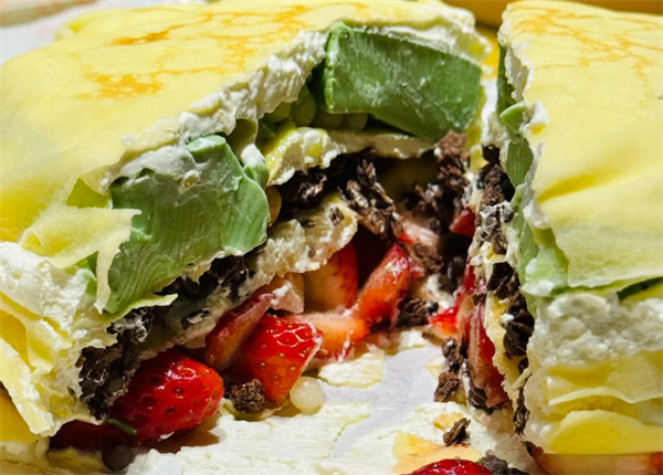 源麦甜千层蛋糕提供丰富多样的口味组合,顾客可以根据个人喜好自由搭配,例如榴莲、芒果、血糯米、芋泥、杏仁燕麦片、伯爵茶奶冻、碧根果碎等,每一种口味都是对味蕾的极致诱惑。