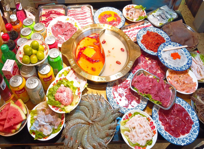 黄亮亮原切牛肉自助火锅从麻辣鲜香的红汤到底鲜味美的清汤,再到各式自制蘸料,顾客可以根据自己的口味喜好自由搭配,创造出属于自己的专属火锅风味。这里的火锅菜种类繁多,各种蔬菜、菌类、豆制品、海鲜应有尽有。数量之多,种类之丰盛,让人感叹店家的用心。对于美食爱好者来说,这里简直是天堂!此外,饮料、奶茶、甜品也是无限畅饮,让你吃得满足,喝得愉快!