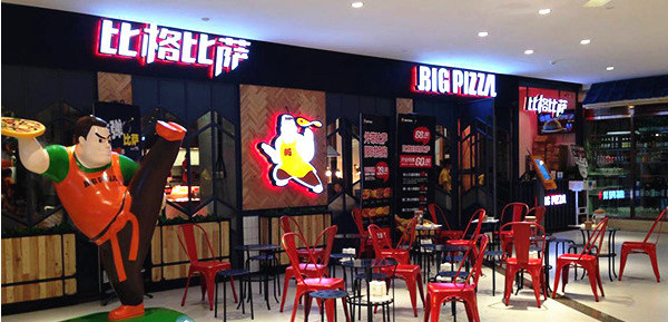 比格披萨拥有统一的店面形象和装修设计风格,有效推进了终端视觉风格融合建设,给消费者带来了规范化认知,并产生消费者信心