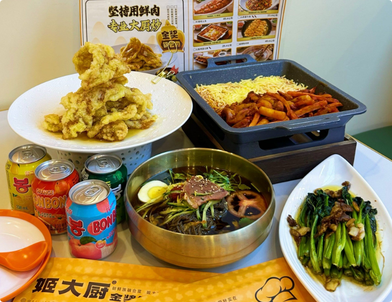 姬大厨金奖锅包肉全线20多种产品复合售卖,除锅包肉外,更有金奖锅包肉、石板鸡蛋豆腐、裙带菜豆腐、火辣鸡爪、韩式米肠、香辣鸡翅、芝士玉米等吮指零食、嘬嘴儿小吃、解腻饮品和能量包,满足所有消费人群的不同购买需求,客户消费欲望高,店面开张即客流不断。姬大厨秉持全心全意、精益求精的态度,致力于将每一份锅包肉做得美味和健康,传递最地道的好滋味,同时,力求为广大消费者带来更高品质的美食新体验,在锅包肉中能够吃出品味和格调。姬大厨金奖锅包肉加快连锁经营的拓展步伐。历经品牌创业者的不懈拼搏,获得了长足、稳健的发展,目前已形成拥有多家品牌连锁实体店。