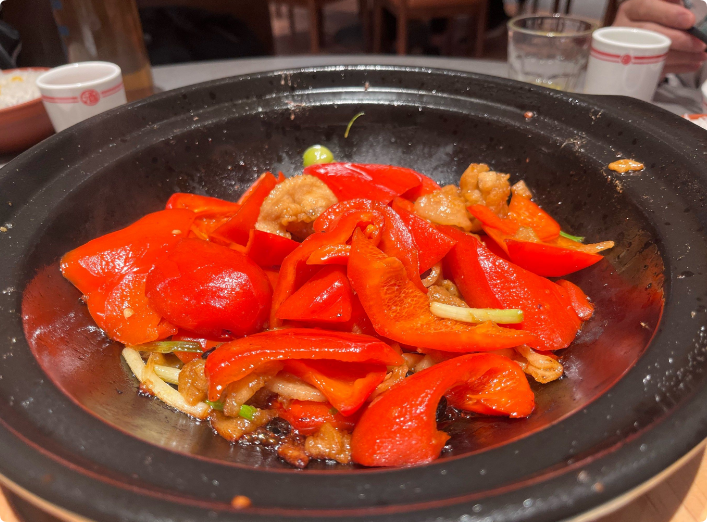 小而湘湖南小炒砂锅菜的鲍鱼走地鸡鲍鱼Q弹,鸡肉细嫩,砂锅煮出来的汤汁特别入味,每一口都是满满的幸福感。鲍鱼走地鸡浓郁的剁椒香扑面而来。煮熟后的鲍鱼鲜嫩Q弹,每一口都是对味蕾的极致挑战。还有小炒黄牛肉、梅菜扣肉、烟笋炒腊肉,都是妥妥的下饭菜,夏天没胃口的这口湘菜下肚,食欲直接拉满,瞬间找回快乐~