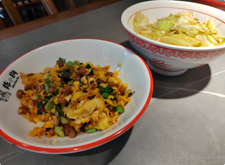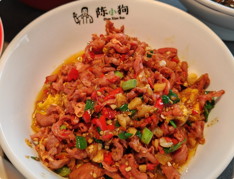 陈小狗饭店的肝腰合炒,腰花和猪肝炒得嫩滑入味,偏辣但完全不掩鲜味,分量超足,对得起这个价格,腊八豆炒鸡蛋全场最佳!不辣但香到灵魂出窍,炒鸡下饭,味道刚刚好,一口接一口停不下来!炒鸡杂里面有鸡蛋,味道偏辣但超带感!喜欢这种重口味的感觉,越吃越上瘾!萝卜干炒猪头肉、小炒黄牛肉、湖南茄子,每一道菜都让人满意。直接把这些菜盖在米饭上,搅拌均匀,大口吃吧!每道菜都可以单独拿出来当招牌菜,真是让人吃得舒心。