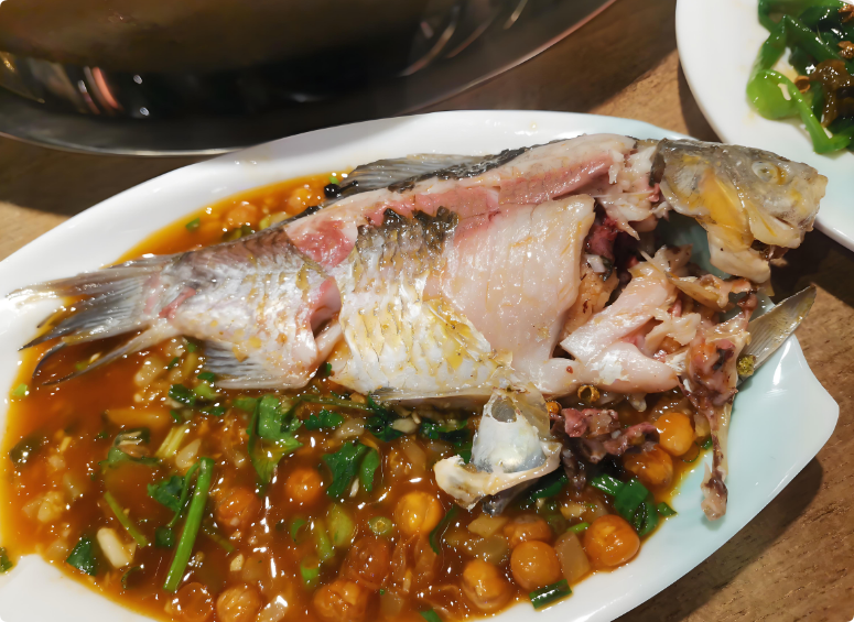 铁言子石锅土鲫鱼外皮香脆、肉质软嫩、色泽金黄、味腴而鲜美,对食材的一份追求,对营养的精准把控,对口味的一次呈现,是别人模仿不了的中餐馆。铁言子石锅土鲫鱼采用耐高温天然石雕琢而成的石锅,该石锅富含钙、铁、锌、镁等微量元素,在高温作用下,锅中微量元素迅速分解于汤中,使菜肴增添有益无价的微量元素。