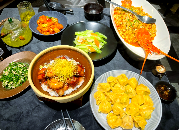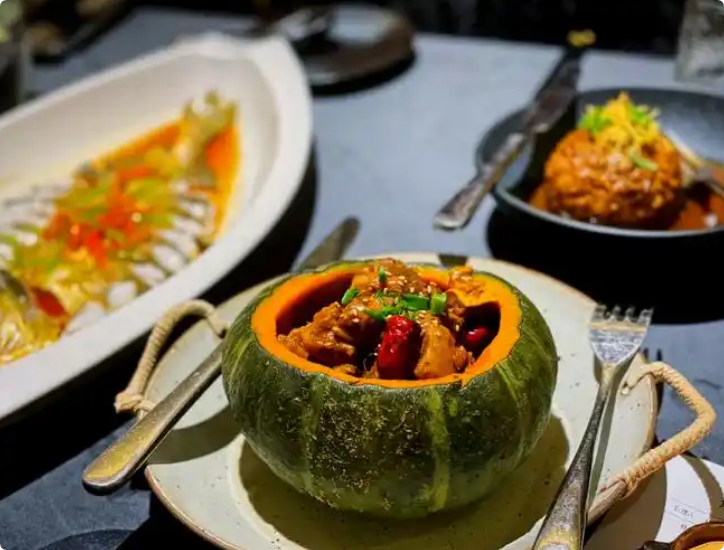 银棠搭配精心调配的蔬菜沙拉,慢慢品味蔬菜沙拉和火腿碰撞的滋味。炙焰盐焗鲍鱼,盐焗鲍鱼,是广东的特色做法,是一种高级的烹饪方法。保留了鲍鱼的原味和鲜味,口味咸鲜,口感软糯,干香而不柴,盐焗而不咸。脆皮乳鸽,选用新鲜鸽肉原料,肉质滑嫩有嚼劲,不发柴,肉香浓郁纯正,滋味在舌尖晕染出迷人的味道,令人味蕾欢喜。银棠海鲜粥以大米和鲜虾等各类新鲜海产品为制作主料,采用砂锅经过时间熬煮,滚烫香鲜,细滑可口;软黏稠香,回味无穷。