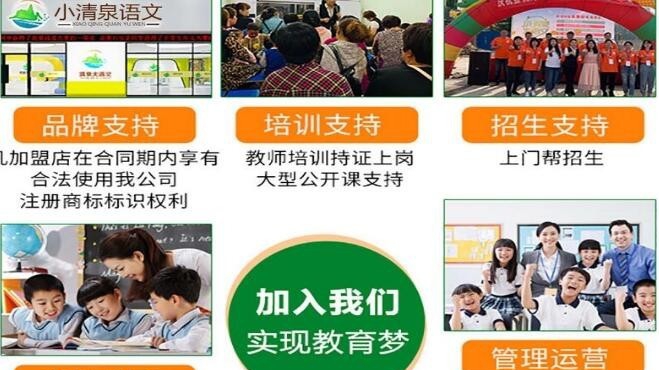 加盟小清泉语文,培养新时代“三好“学生,写好字 读好书 作好文。 小清泉语文包含《拼音奇遇记》、《故事学语文》、《快乐学语文》、《小清泉作文》和《小清泉阅读》,教育市场一片蓝海,抢占语文商机。教育机构核心竞争力——教学效果+服务质量,致力于打造教育机构的核心竞争力。